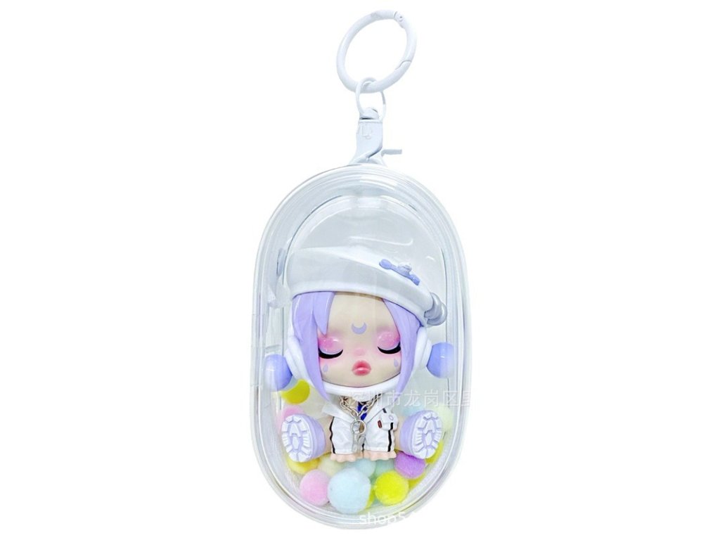 Uzavřený průhledný obal z vysoce čirého a zesíleného PVC, ideální pro vystavení a ochranu blind box figurek. Díky praktickému provedení lze figurku, kterou běžně nelze brát ven, bezpečně zavěsit na tašku nebo batoh. Poskytuje ochranu proti prachu, poškrábání i drobnému poškození a zároveň umožňuje figurku stylově vystavit.