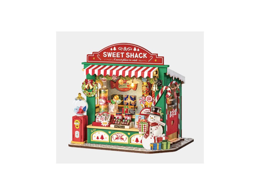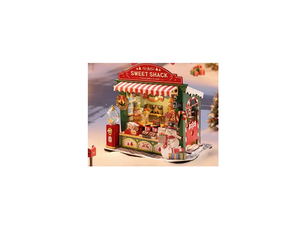 Vytvoř si kouzelnou vánoční atmosféru s Christmas Candy Stand, detailně propracovaným DIY miniaturním domečkem, který představuje roztomilý vánoční stánek plný sladkostí. Tento kreativní model potěší každého, kdo má rád ruční tvorbu, dekorace a sváteční náladu.
